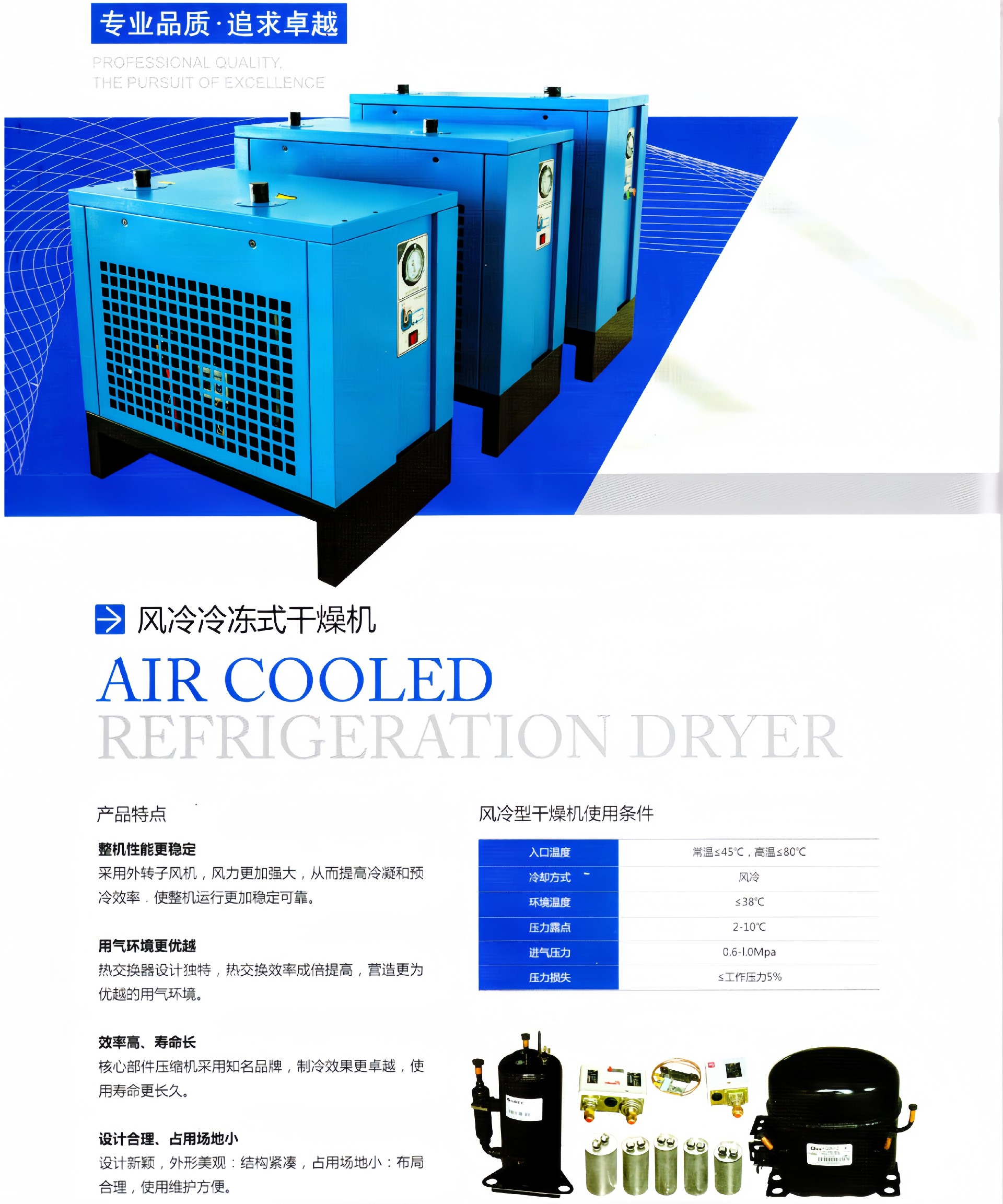 产品描述:工况条件与技术指标进气温度(Inlettemperature):≤80℃冷却方式(Coolingmethod):风冷(Air-cooling)进气压力(Inletpressure):0.6~1.0Mpa压力损失(Pressuredrop)≤0.03Mpa压力露点(Dewpoint):2~10℃制···